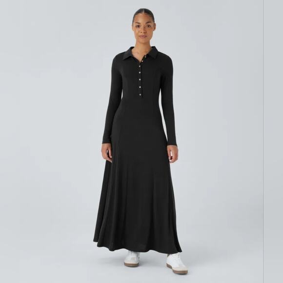 Women's Halara black, Collared, Button, Long Sleeve, Flare, Maxi, Casual Dress in size XL. New with tags!