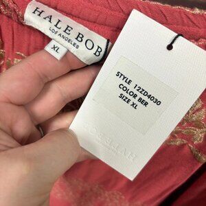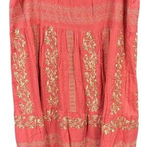 NWT Hale Bob Womens Coral Gold Threaded Embroidery Crinkle Maxi Skirt Size XL. Embroidered Rayon Crinkle Gauze elastic waist Skirt. Lined with 1/2 slip.