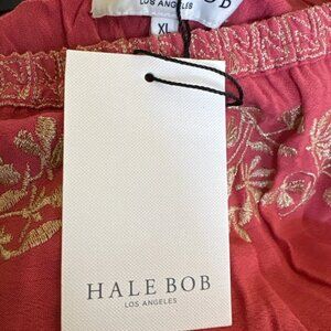 NWT Hale Bob Coral Gold Boho Embroidered Gauze Crinkle Maxi Skirt Size XL