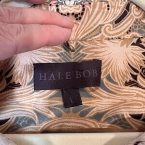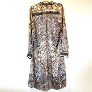 NWT Hale Bob Satin Silk Long Sleeve Collared Midi Shirt Dress Large
