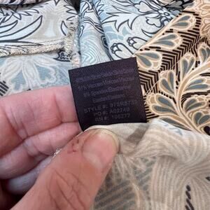 Midi length, beautiful fabric of beiges and browns with hints of teal.