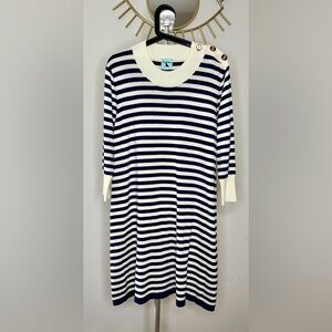 NWT Haley and the Hound Navy and Cream stripe long sleeve sweater dress Large