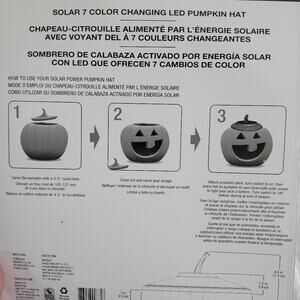NWT Halloween Solar 7 Color Changing LED Pumpkin Jack-o-lantern Hat