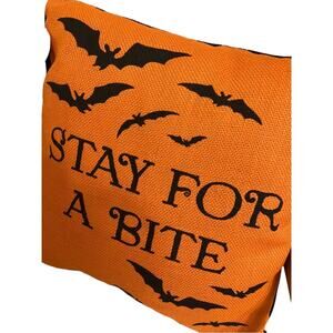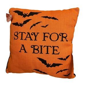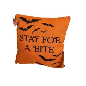 NWT Halloween Stay For A Bite Orange Bats Decorative Pillow 15x15