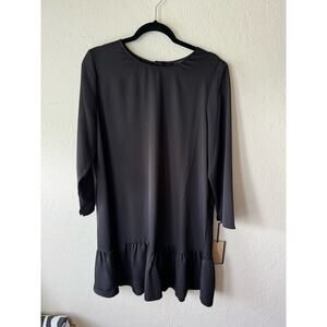 NWT Halogen Crew Neck Ruffle Hemline Black Long Sleeve Petite Dress Size L