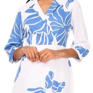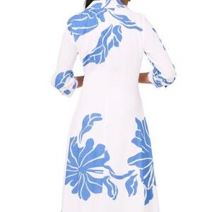 Reserve the top of your packing list for a linen-kissed maxi tumbled with showy blue blooms.