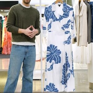 NWT Halogen® Floral Wrap Front Maxi Dress in Blue - size large