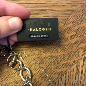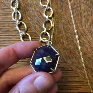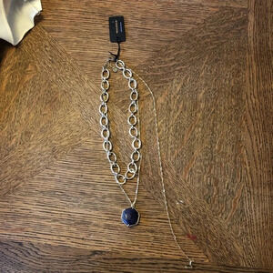 New with tags. Please note that this necklace has 3 chains, and the thinnest, plain chain is broken and needs to be removed. The other two chains are in tact. The purple stone is listed on the tag as genuine.