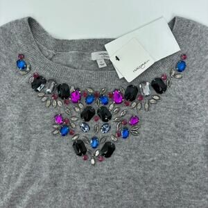 NWT Halogen Heather Gray Cashmere Jeweled Cropped 3/4 Sleeve Sweater - Plus 2X