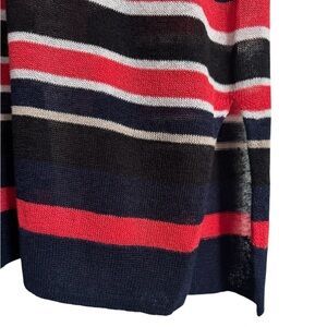 NWT Halogen Longline Open Front Cardigan Casual Summer Sweater Stripe Navy Red M