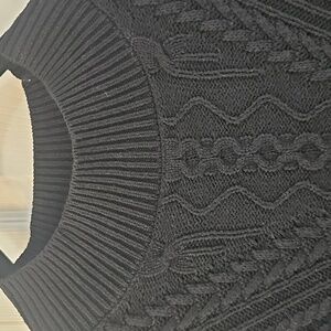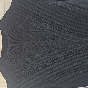 Stay cozy and stylish with this elegant black cable knit sweater. Perfect for any occasion, it features a classic design with a modern twist. Ideal for layering or wearing on its own.