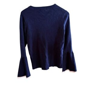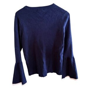 NWT Halogen Pullover Womens Blue Bell Sleeve Stretch Size Small