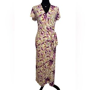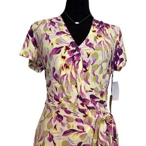 NWT Halogen. Woman’s Crossover Short Sleeve Purple Floral Wrap Dress