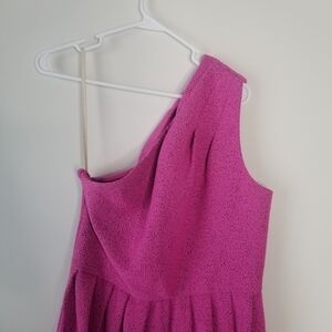 NWT Halston Heritage One Shoulder Pleated Sheath Cocktail Dress Petunia Pink 12