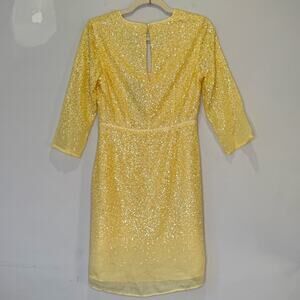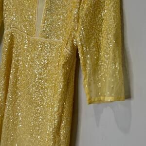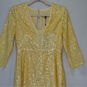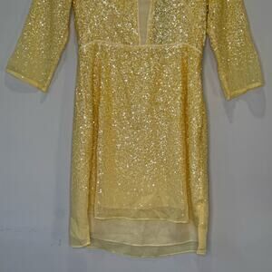 NWT Halston Heritage Sequin High Low V-neck Cocktail Mini Dress Camomile Sz 2