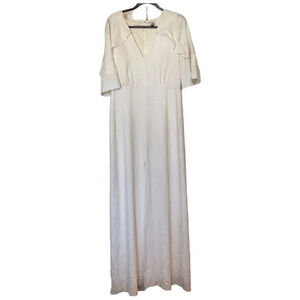 NWT Halston Women's White V Neck Flutter Short Sleeve Maxi Long Dress Size 12