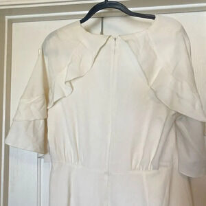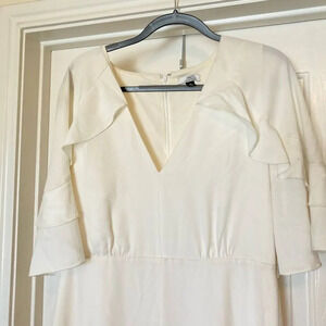 Halston Women's White V Neck Flutter Short Sleeve Maxi Long Dress Size 12 NWT