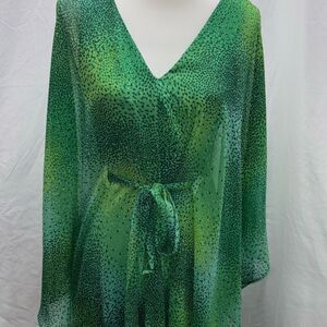 NWT Halston kelly green keg dress tie front Sz 4 sheer caftan