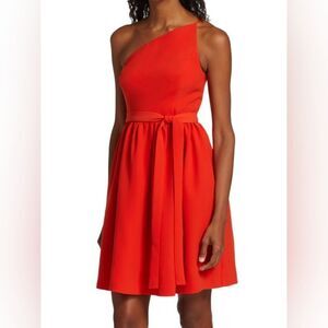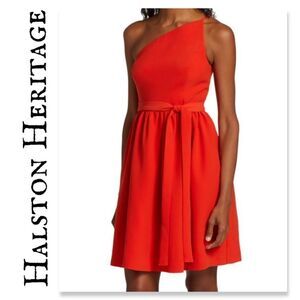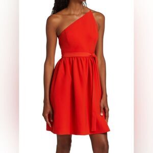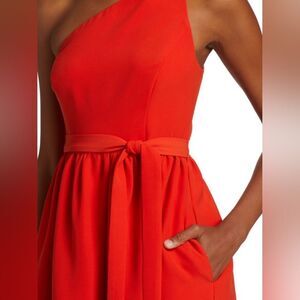 This elegant party dress with on-trend pockets flaunts a sash waist and playful one-shoulder design.