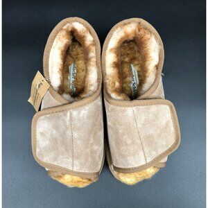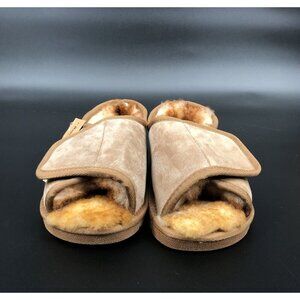 NWT Hammacher Schlemmer Women Sheepskin Open Toe Heel Wrap Slippers L 7.5-8.5