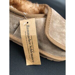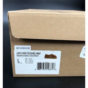 NWT Hammacher Schlemmer Women Sheepskin Open Toe Heel Wrap Slippers L 7.5-8.5 Chestnut New With Tags