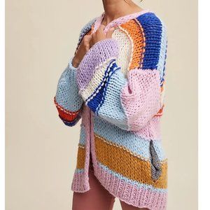 NWT Hand Knit Multi Striped Cardigan Sweater