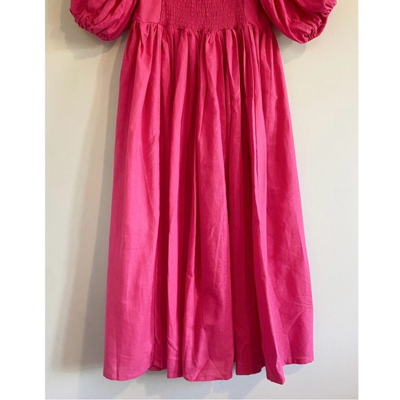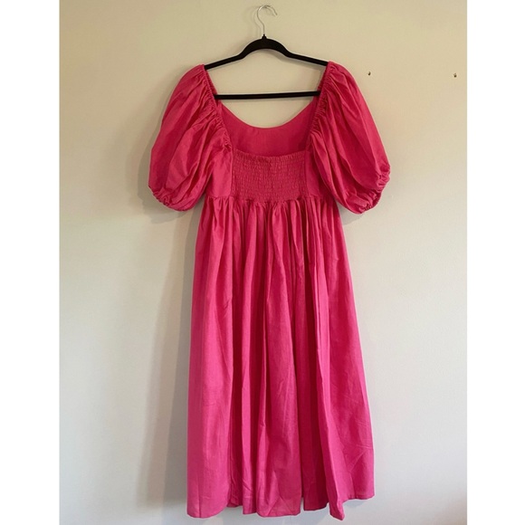 NWT Hand Made Bali ELF Cherie Puff Sleeve Midi Dress in Magenta