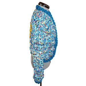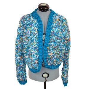 NWT Handmade Crochet Blue Feral Medium Bomber Jacket Sweater Cardigan Chunky