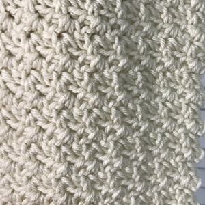 Measurements: beanie width 18”, length 10”; scarf width 6 ½”, length 66”