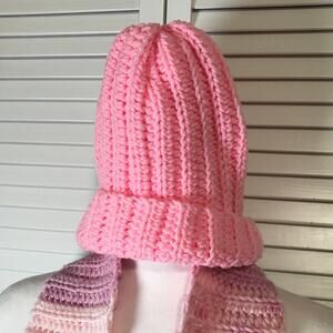 NWT Handmade Crocheted Pink Textured Beanie & Scarf 56”