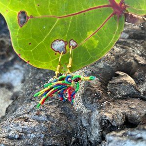 The earrings are made with embroidery floss and can be customized using the color of your choice.