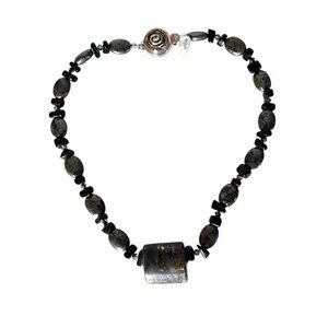 NWT Handmade Pyrite, Onyx and Swarovski Crystal necklace