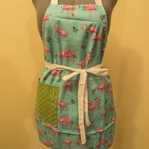 100% cotton, reversible apron. Christmas flamingos and polka dots!