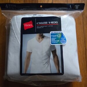 NWT - Hanes 4 Tagless V-Neck Tees - White - Large