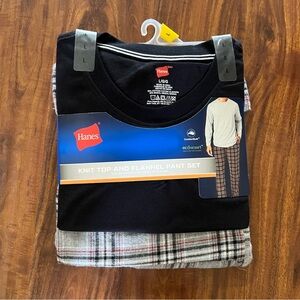 NWT Hanes Mens ComfortSoft Long Sleeve Crewneck Flannel Pant Pajama Set size L