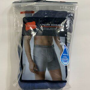 NWT Hanes Men's Pack 4 Tagless Boxer Briefs 100% Cotton- Size Med 32-34, Blue