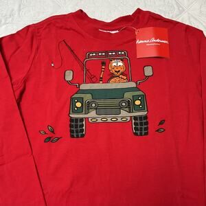 New with tags Hanna Andersson long sleeve graphic t-shirt in Hanna red. Fun tiger and Jeep fishing graphic. Size 110 / 5.