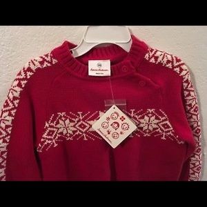 NWT Hanna Andersson Red Nordic Snowflake Ski holiday sweater 100cm/4-5. 100cm or size 4-5. Crewneck style with snowflake pattern. Color: Red.