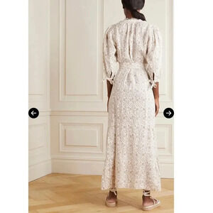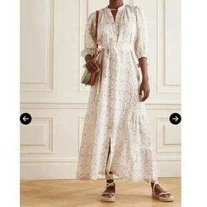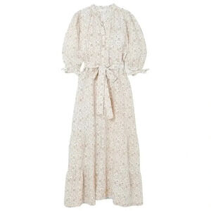 NWT Hannah Artwear Camellia Print Linen Maxi Tiered Puff Sleeve Long Maxi Dress
