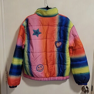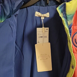 NWT Hannah Banana Girls Colorful Rainbow Coat Size 16 Zipper with button overlay