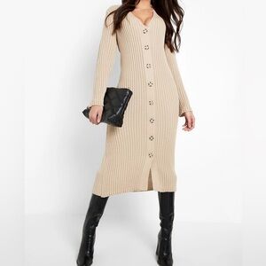 NWT Happily Grey Cream Ribbed Knit Button Accent Front Sweater Maxi Dress Ivory