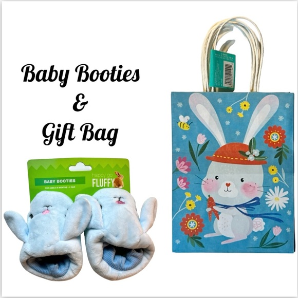 NWT Happy Go Fluffy Blue Bunny Baby Booties Size 0-6 Months