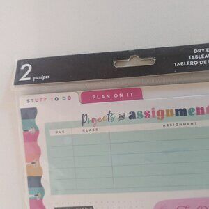 Excellent new Happy Planner brand 2 piece student themed dry erase dashboards for green, eco-friendly reusable planning within your Happy Planner. This item is brand new in sealed packaging, made to fit classic size Happy Planners. This lovely, new with tags Me & My Big Ideas Happy Planner accessory coordinates with other Happy Planner customizable organizer elements. This cheerful Happy Planner dry erase set is perfect for classwork, planning your week, and is great for organizing your life!