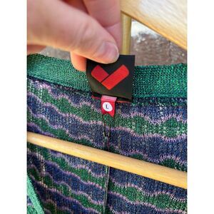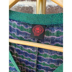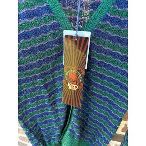 NWT Happy Sheep Lurex Italian Blue & Green Metallic Button Cardigan Size Large