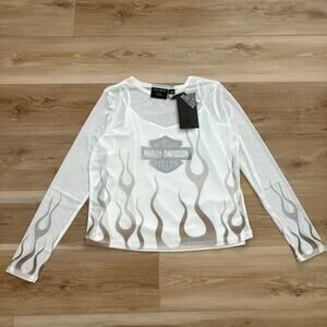 NWT Harley Davidson Women's Flames For Days Mesh Top in Cloud Dancer size Large