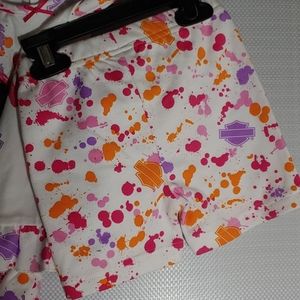 This is a little girls Harley Davidson Tank Top, short outfit! Has a little bow on front and Harley-Davidson babe on front and ruffles at the bottom. Short are stretch waste! Adorable outfit for your little Harley girl!
