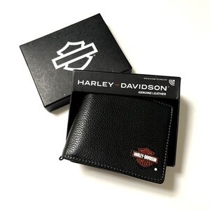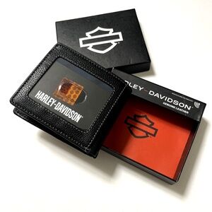 NWT Harley-Davidson RFID Wallet 🧡 Genuine Leather Bifold Black Logo Gift Boxed