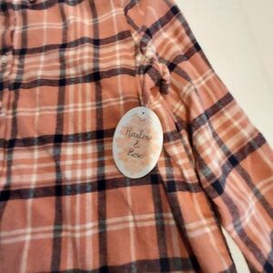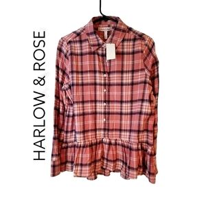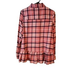 NWT Harlow & Rose Sherpa flannel pink plaid button exaggerated ruffle sh…