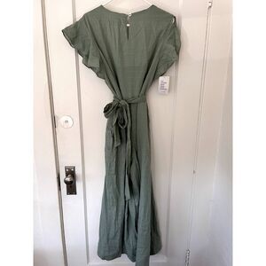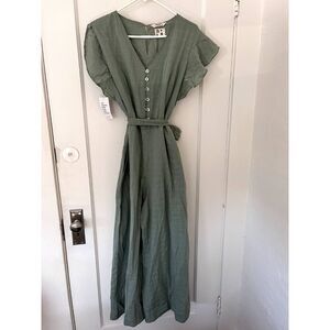 NWT HarperSage Harper Terra Jumpsuit Green Flutter Sleeve Tie Waist Size Large