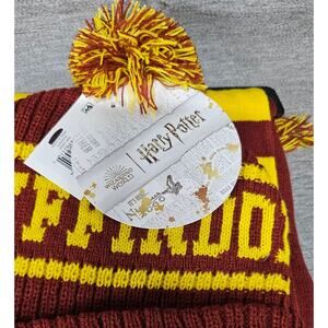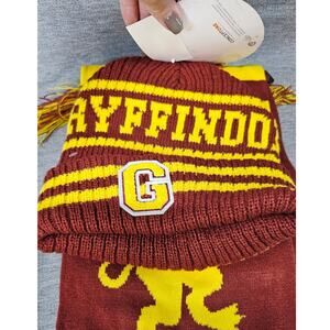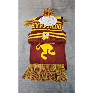 NWT Harry Potter Gryffindor Knit Hat & Scarf Set Collegiate Stripes Quidditch OS
